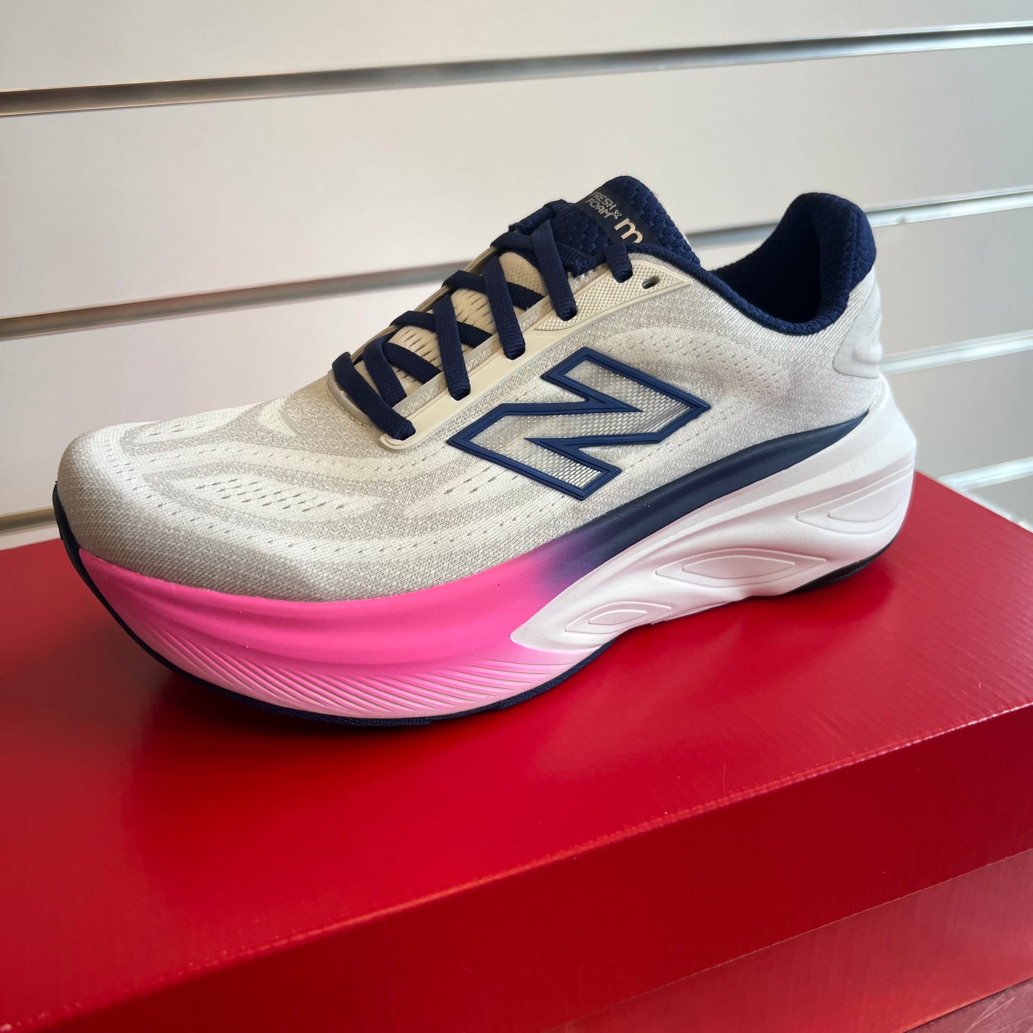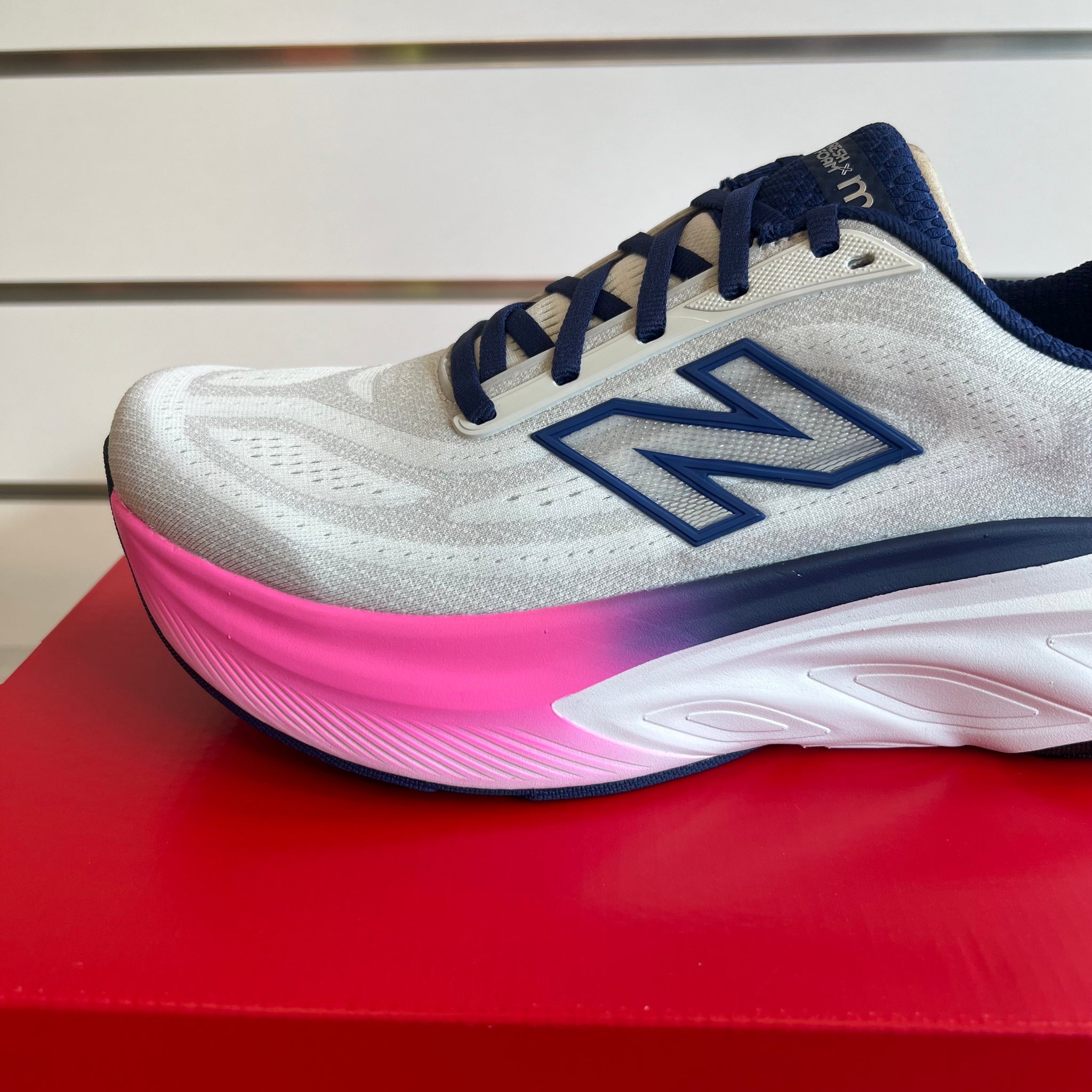 Skoen har en høj, luftig mellemsål med Fresh Foam X-skum, som absorberer stød effektivt og giver en blød, næsten “pudeagtig” følelse under foden. Det gør den rigtig rar at løbe i, når du gerne vil have komfort frem for et ekstremt tempo – perfekt til restitutionsturene, lange løb eller daglige træningspas.